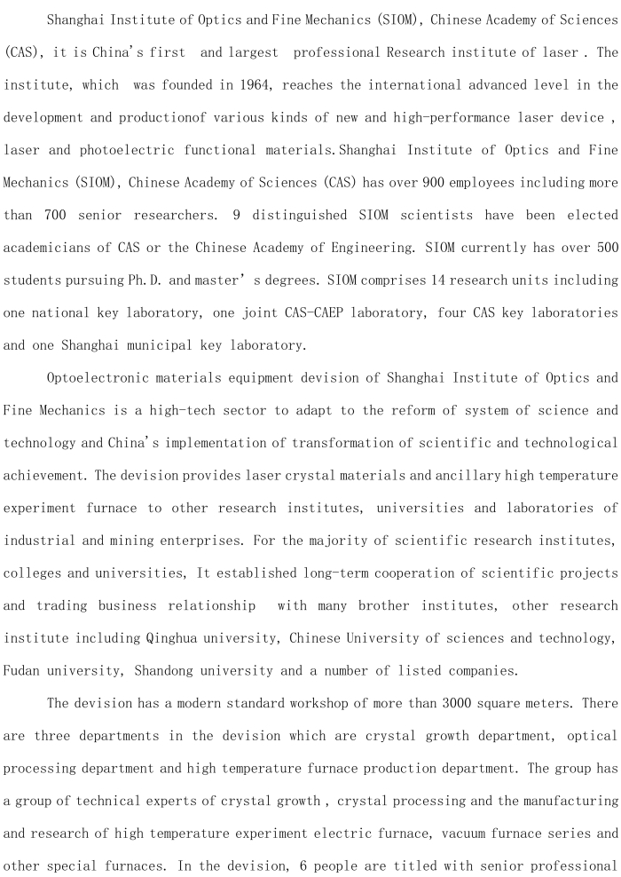 Shanghai Institute of Optics and Fine Mechanics.CAS, Chinese Academy of Sciences Opto Electronic Material & Equipment Dept